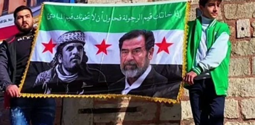 | 2025年10月26日 | 我がイラク政府が屈服しているにもかかわらず、ジャウラーニーの武装集団、すなわちシリアのアルカーイダは、9年生の歴史教材に故サッダーム・フセインの写真を掲載している。これは、彼の旧体制によって抑圧された数百万人のイラクのシーア派、クルド人、さらにはスンナ派の感情を刺激する挑発であり、イラク国家全体に対する挑発でもある。 | @hydikm | 批判的 |
